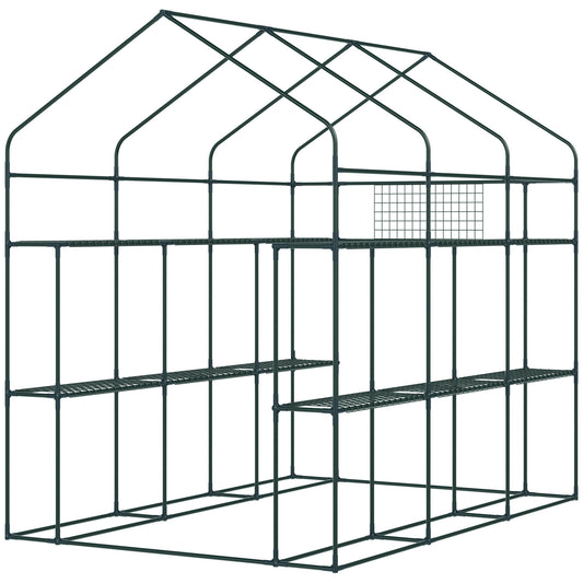Outsunny 7' x 5' x 6' Walk-in Greenhouse with Mesh Door and Windows, 18 Shelf Hot House with Trellis, Plant Labels, UV protective for Growing Flowers, Herbs, Vegetables, Saplings, Green