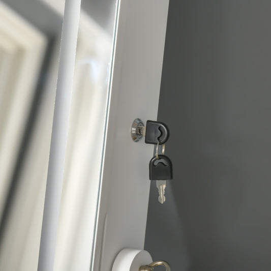 HOMCOM Floor Standing Jewelry Cabinet with LED Light, Lockable Jewelry Organizer with Full-Length Mirror, and 4 Adjustable Angles, White