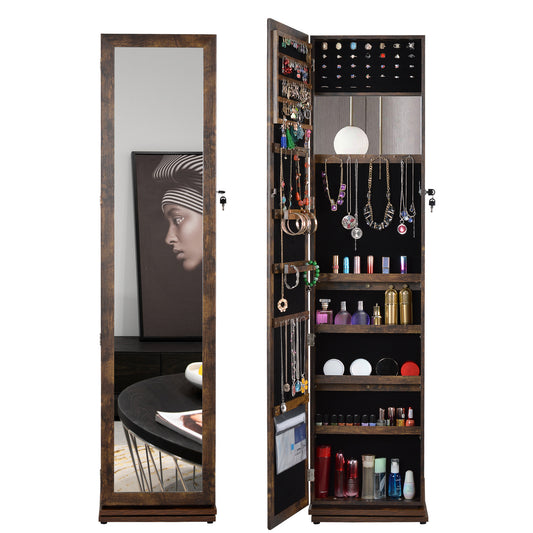HOMCOM Floor Standing Jewelry Cabinet, Lockable Jewelry Organizer with Full-Length Mirror, and 3 Adjustable Angles, Grey