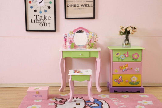 Kids Funnel Layla Girls Flower Vanity Set with Stool