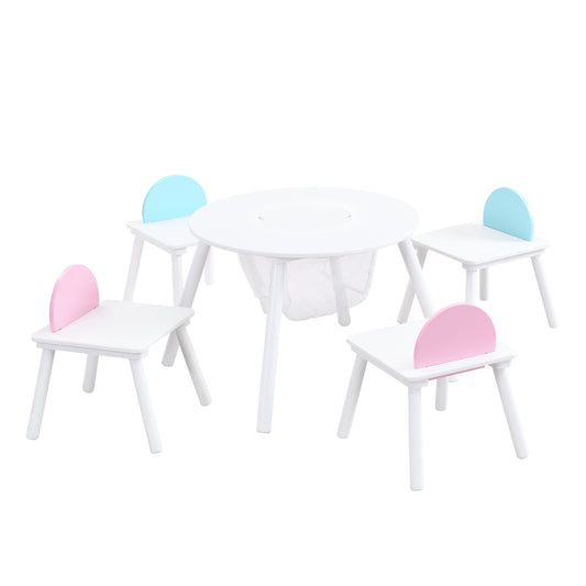 Qaba 3 Piece Kids Table and Chairs, Height Adjustable Toddler Table and Chair Set with Storage, Easy to Wipe Activity Table, 2 Chairs for Daycare Classroom & Ages 18 Months-5 Years, Pink