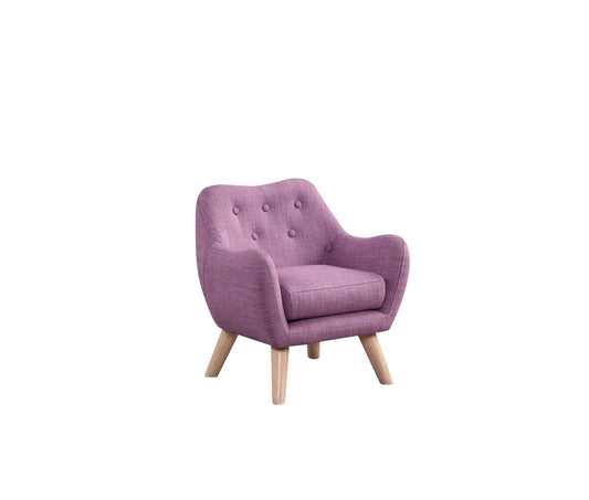 Fenix 19.5"W Pink Linen Kids Chair with Button Tufted Back and Wooden Legs