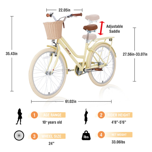 Steel Frame,Multiple Colors, for 10+Years Old Girls Bike,24 inch wheel