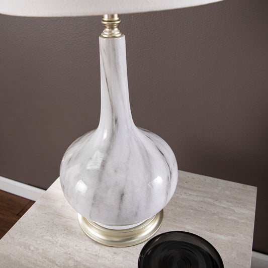 Nova Hydro Black Table Lamp with On/Off Switch Double Lamp with Faux Marble Base