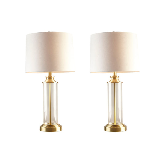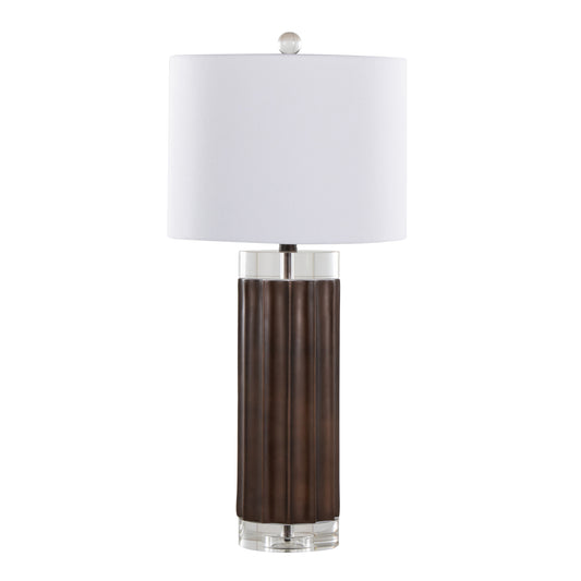 Cylinder Fluted 29.25' Contemporary Polyresin Table Lamp in Brown Lustre Polyresin, Clear K9 Crystal and White Linen Shade from Grandview Gallery by LumiSource - Set of 2