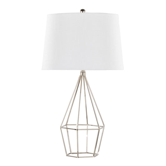 Geome Tri 28' Contemporary Metal Table Lamp in Matte Black Metal with White Linen Shade from Grandview Gallery by LumiSource - Set of 2