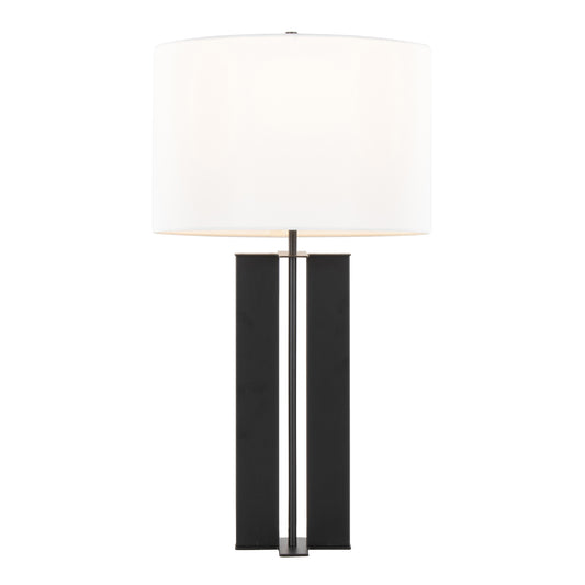Cosmo 28" Contemporary Metal Table Lamp in Black Metal and White Linen by LumiSource