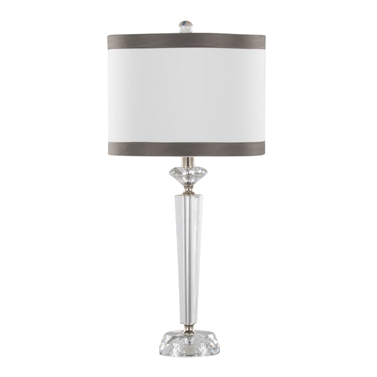 Diamond Torch 25.75" Crystal Contemporary Table Lamp in Clear K9 Crystal, Off-White Linen Shade with Dark Grey Trim and Polished Nickel Accents from Grandview Gallery by LumiSource - Set of 2