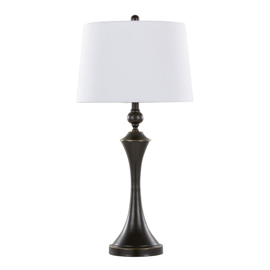 Flint 30' Contemporary Metal Table Lamp in Oil Rubbed Bronze with White Linen Shade and Built-in USB Port from Grandview Gallery by LumiSource - Set of 2