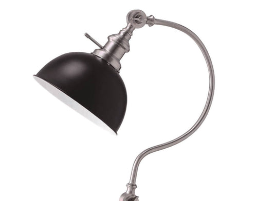 Industrial Style 1pc Table Lamp Stain Nickel Circular Metal Base Curved Stem Lamp