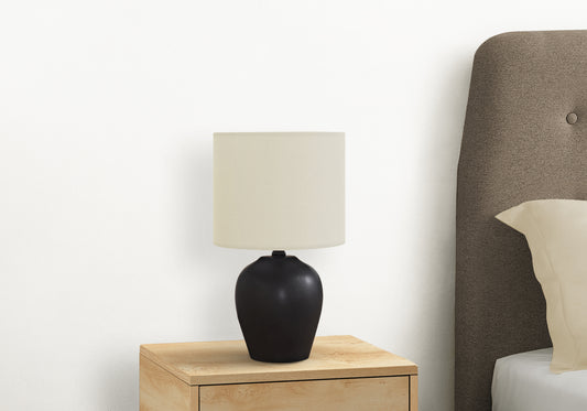Lighting, 17"h, Table Lamp, Black Ceramic, Ivory / Cream Shade, Transitional