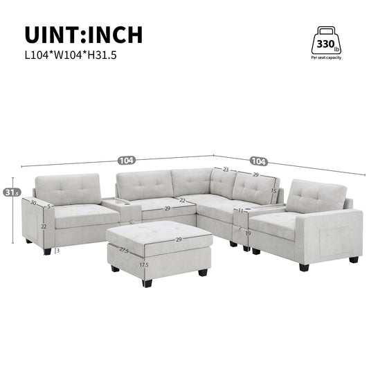 106.3" Soft U-shaped 6-Person Sofa. Matches 30.7" Ottoman with Hydraulic Lift. Comfortable & Stylish. For Bedroom & Living Room. Light Gray. Modern Furniture. Modular Design.
