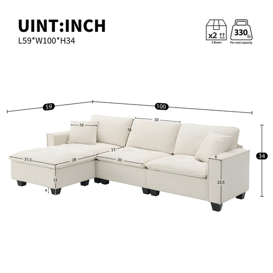 106.3 inch large striped compression sofa, modern style, living room and bedroom furniture, comfortable home style, vacuum compression, full sponge, high rebound straight row with foot pdal beige