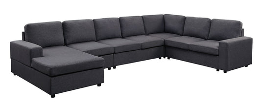 Isla 119" Gray Woven Fabric 7-Seater Sectional Sofa with Ottoman