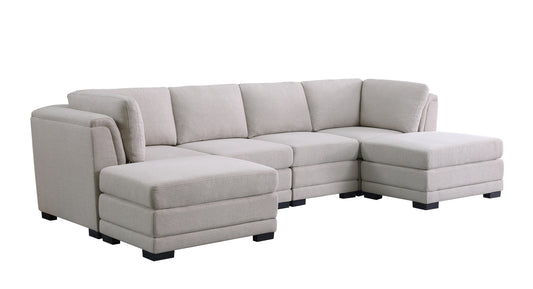 Kristin 121.5" Light Gray Linen Fabric Reversible Sectional Sofa with 2 Ottomans