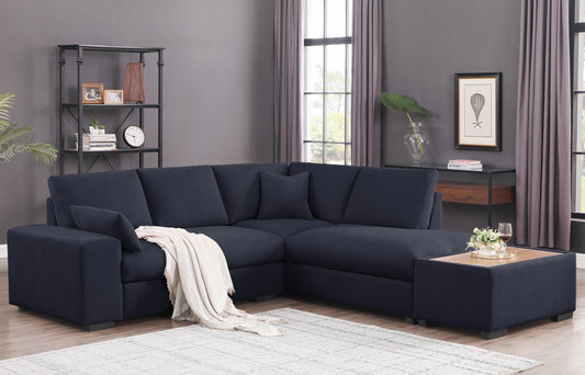 Joshua 100"W Dark Gray Woven Fabric Sectional Sofa with Right Facing Chaise and Console Ottoman