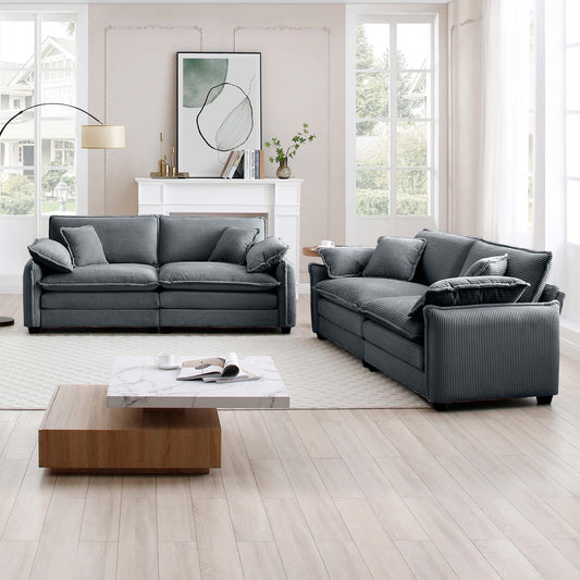 Modern Living Room Sofa Two-Piece Set, Suitable for Living room and Bedroom Sofa Set, Consists of two pieces of 2 Seater Sofa,Grey Corduroy