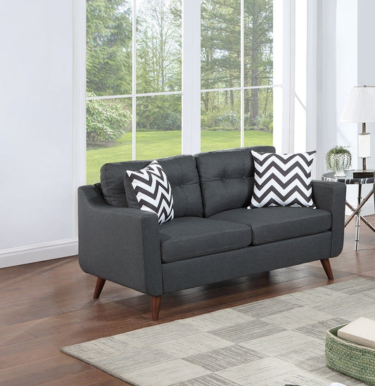 Modern Cozy Sofa Loveseat w Pillows 2pc Sofa Set Black Polyfiber Couch Tufted Cushions Living Room