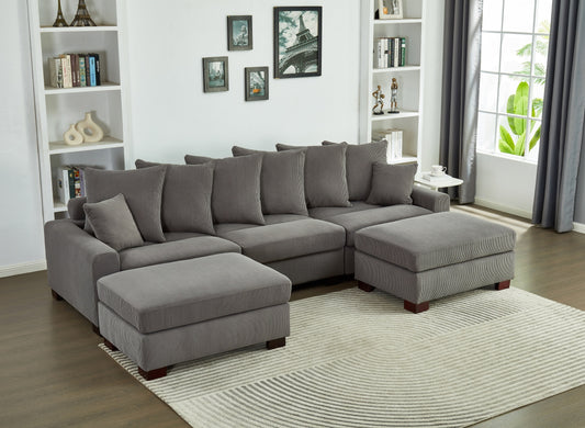 Modular Sectional Sofa,5 Seater Oversized Convertible L & U Shaped Couch, Corduroy Fabric