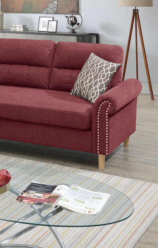 Paparika Red Color Polyfiber Reversible Sectional Sofa Set Chaise Pillows Plush Cushion Couch Nailheads
