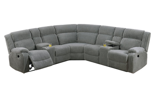 Sectional Sofa w Console Cup Holder 3pc Set Ash Color Luxurious Upholstered Fur Like Corduroy Living Room Couch Motion Reclining