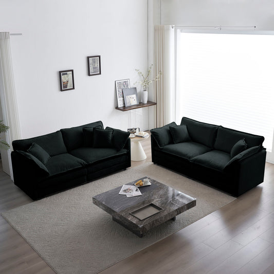 2-Piece Upholstered Sofa, Living Room Sectional Sofa Set Modern Sofa Couches Set , Deep Seat Sofa for Living Room Apartment, 1+3 Seat Black Chenille