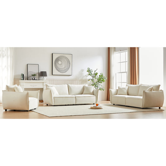 3-Piece Upholstered Sofa, Living Room Sectional Sofa Set Modern Sofa Couches Set , Deep Seat Sofa for Living Room Apartment, 1+3 Seat White