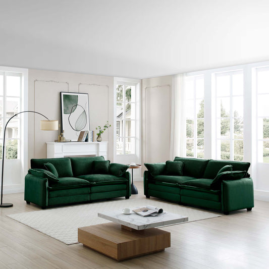 Family sofa set Deep Seat Sofa, Warm Sofa for Home Cinema and Living Room, One 2-Seater Sofa and One 3-Seater Sofa,Green Corduroy