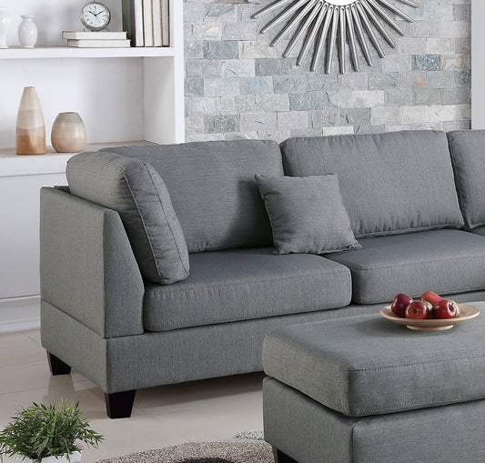 Grey Color 3pcs Sectional Living Room Furniture Reversible Chaise Sofa And Ottoman Polyfiber Linen Like Fabric Cushion Couch