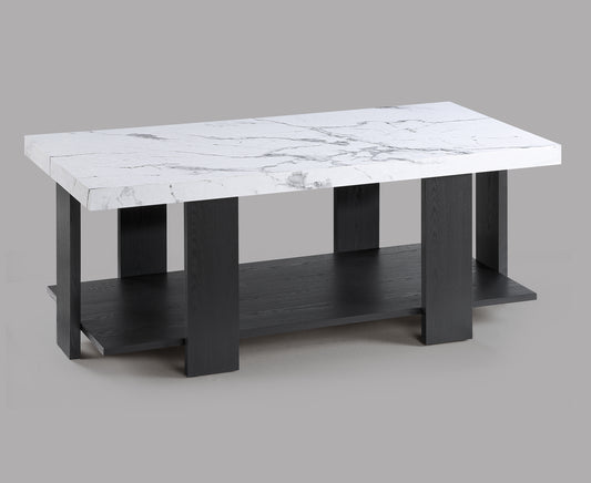 Gray 3-Piece Cocktail Set White Faux Marble Table Top Coffee Table and Two Matching End Tables Living Room Wooden Furniture White Black