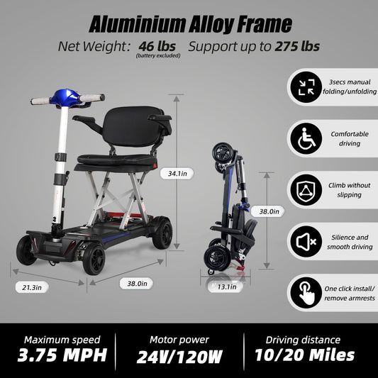 MOBIFREE Powered Lightweight Manual Folding Mobility Scooter M2020 for Adults and Seniors.