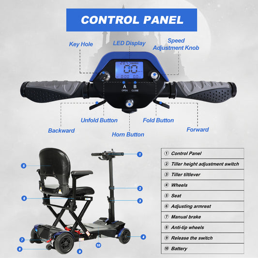 SOLAX 4-Wheel Remote Folding Mobility Scooter for Adults and Seniors, super lightweight and compact plus NFC Electric Foldable Mobility Scooter With Suspenion capacity.