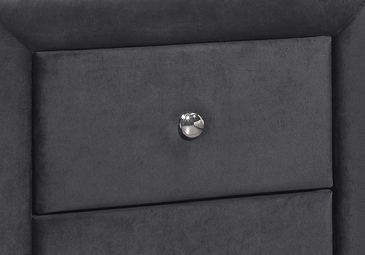 Nightstand, Nightstand, End, Side, Lamp, Storage Drawer, Bedroom, Upholstered, Grey Velvet, Transitional