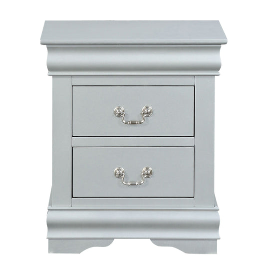 Silver Finish European Design 1pc Nightstand w Genuine Marble Top Traditional Bedroom Furniture