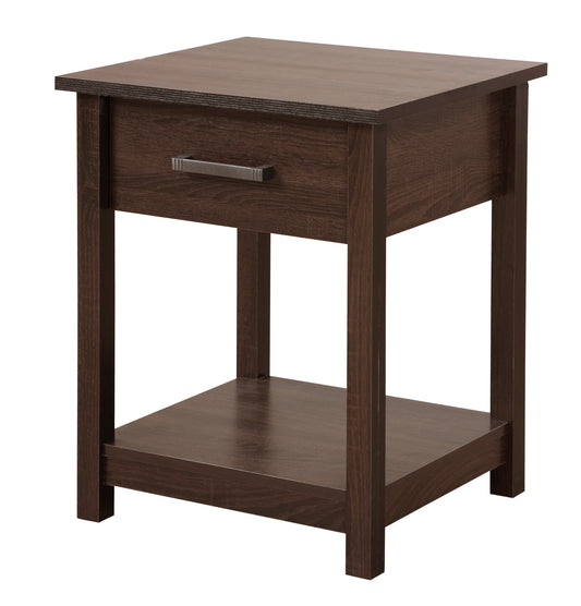 Otom Nightstand , Superior Top, One Open Shelf, One Drawer, Four Legs -Dark Walnut