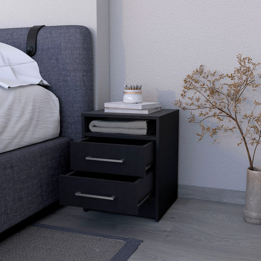Greter 24" Two-Drawer Night Stand With open shelf Black