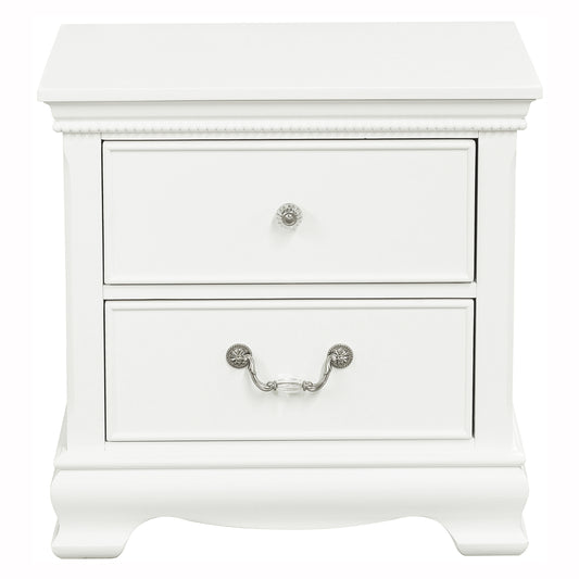 Classic Luxury Pearl White Finish Nightstand of 2x Drawers Wooden Bedroom Furniture 1pc, Dart Molding Design