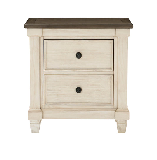 Transitional Rustic Style 1pc Nightstand of 2x Drawers Antique White and Rosy Brown Bedroom Furniture