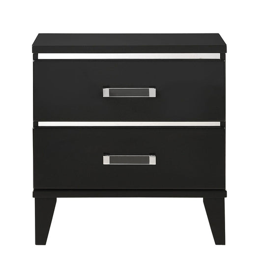 1Pc Contemporary 2 Drawer Nightstand End Table Jewelry Tray Black Finish Solid Wood Wooden Bedroom Furniture