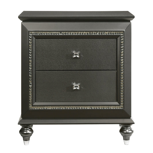 Brownish Gray Finish 1pc Nightstand Melamine Laminate 2x Drawers Dark Metal Hardware Bed Side Table