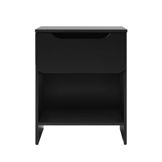 Modern Minimalist 1-Drawer Nightstand with Cubby – Black