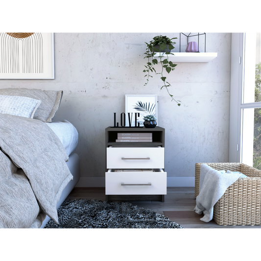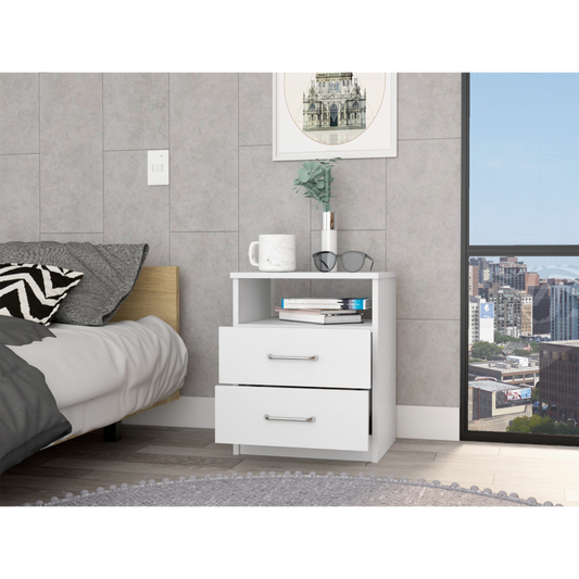 Nightstand 20"H, Two Drawers, Open Shelf, Superior Top, White