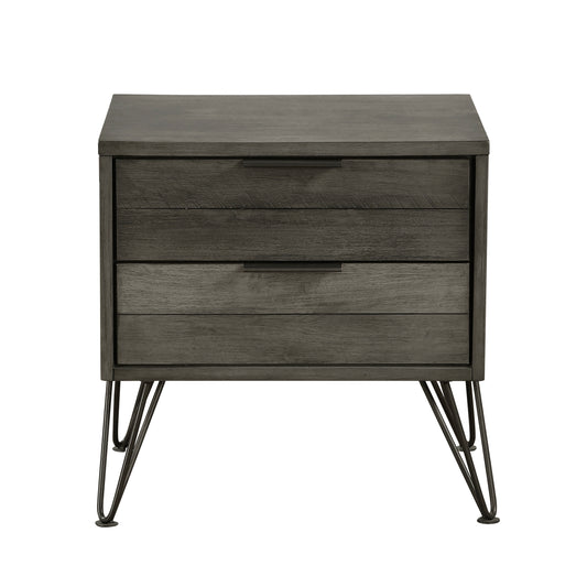 Bedroom Furniture Rustic Grey Oak Simple 1pc Nightstand 2-Drawers Bed Side Table Solidwood