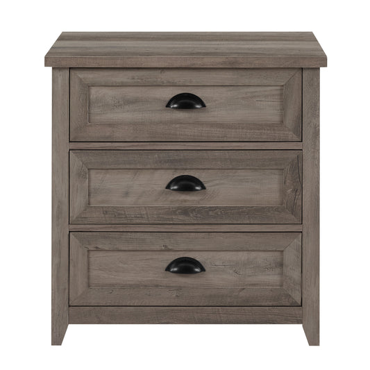Transitional Farmhouse Framed 3-Drawer Nightstand with Cup Handles - Grey Wash