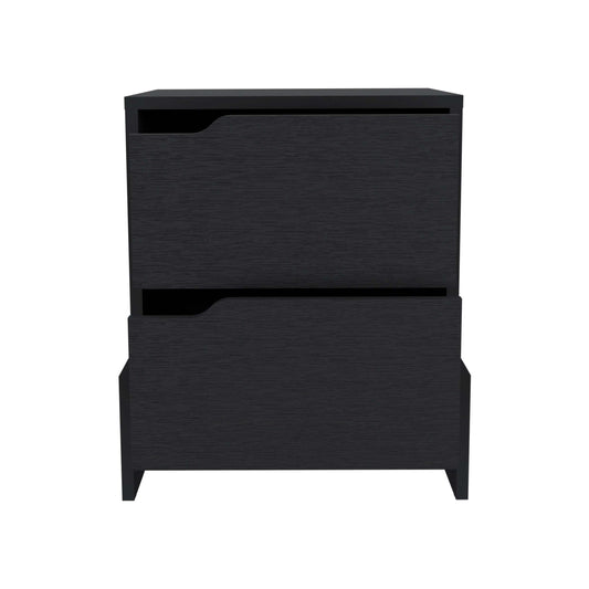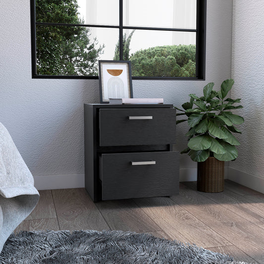 Nightstand 18"H , 2 Drawers with Metal Handles, Black