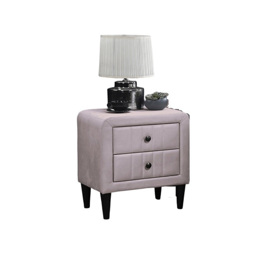 Light Pink Color Velvet Gorgeous 1pc Nightstand Bedside Table 2x Drawers Bedroom Furniture Sleek Design Tempered Legs