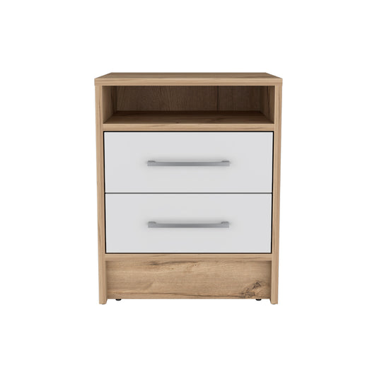 Nightstand Cartiz, Two Drawers, White / Light Oak Finish