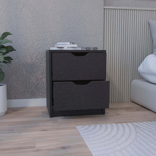 Nightstand 20"H, Two Drawers, Superior Top, Metal Handles, Black
