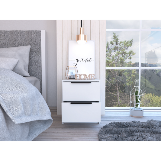 Trivor 2 Drawers Nightstand , End Table, Side Table Metal Handles -White