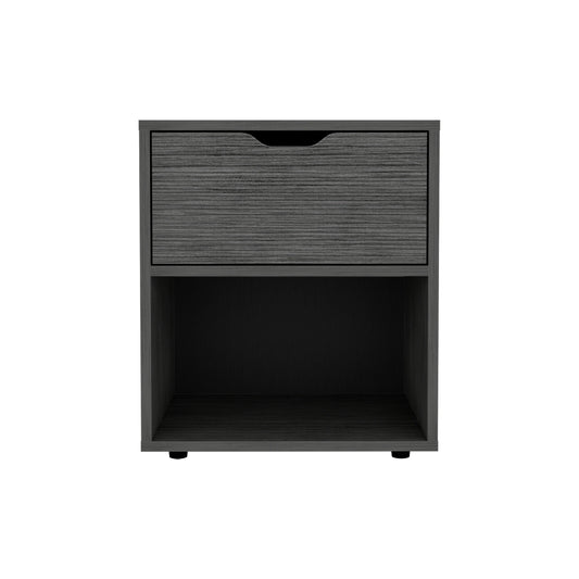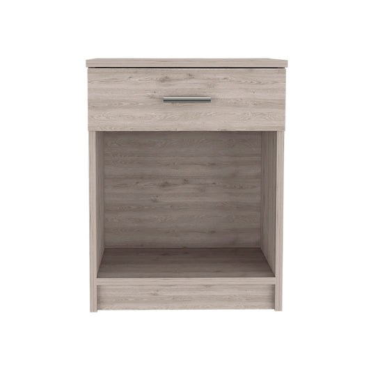 Nightstand Ferku, Open Shelf, One Drawer, Light Gray Finish